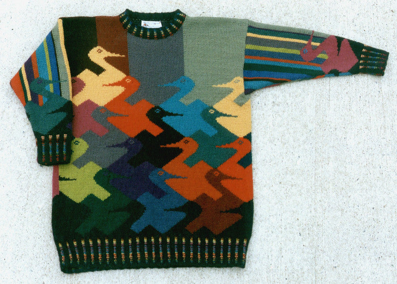 Un motif fascinant et accrocheur de canards identiques entrelacés, inspiré des œuvres du graphiste et mathématicien MC Escher. Une excellente utilisation pour de nombreuses couleurs d'un même poids de fil.