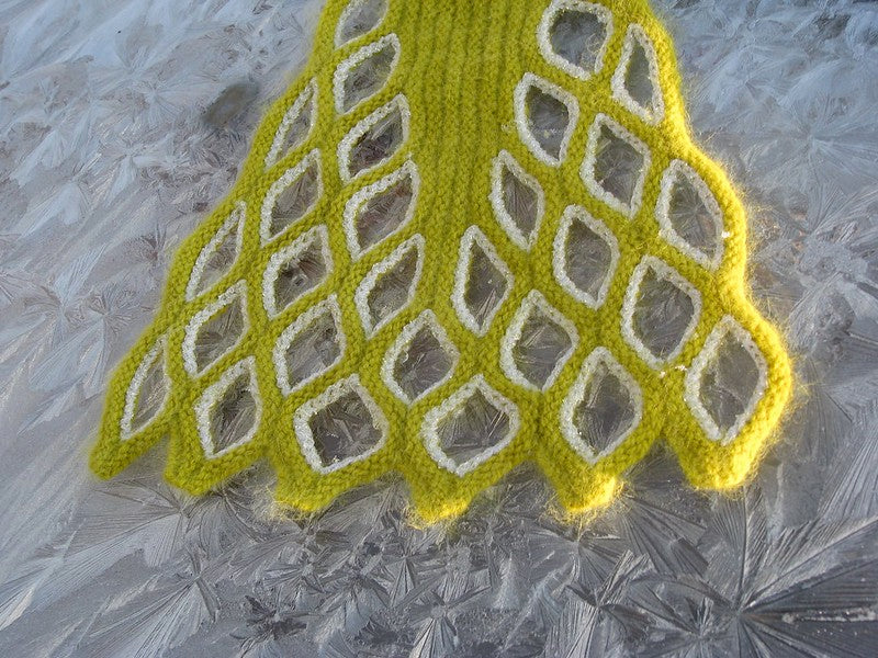 Une technique inhabituelle pour intégrer de l'air frais dans votre tricot vous permet d'obtenir une écharpe aux extrémités sinueuses en forme de queue de poisson ou de racine d'arbre. Cette écharpe est tricotée dans le sens de la longueur ; tricot très facile avec une finition en chaînette au crochet.