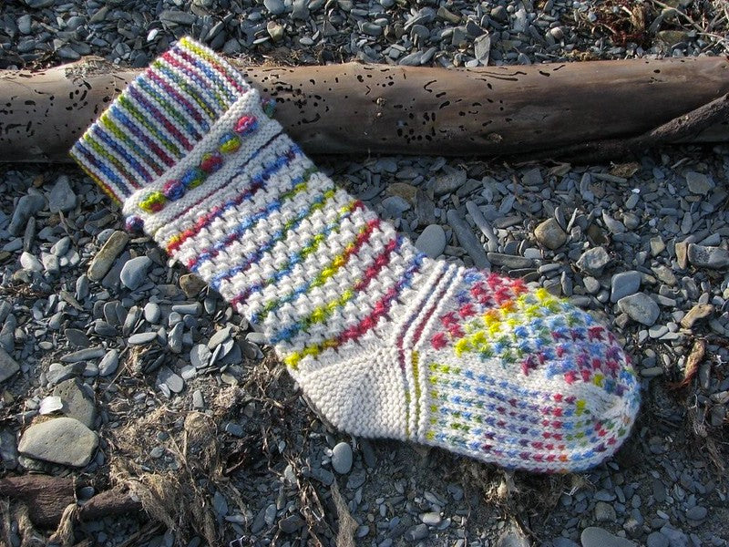 Un bas de Noël ou de vacances décoratif et non traditionnel. Il a été inspiré par les chaussettes Fiesta, toujours populaires. Le design est modifié pour s'adapter à un fil épais avec un petit talon à rangs courts pour lui permettre de bien pendre. C'est un délicieux échantillon de points et de techniques de tricot. Le meilleur de tous, vous n'avez qu'à en tricoter 1 (à moins que les gens découvrent que vous savez comment les faire) !