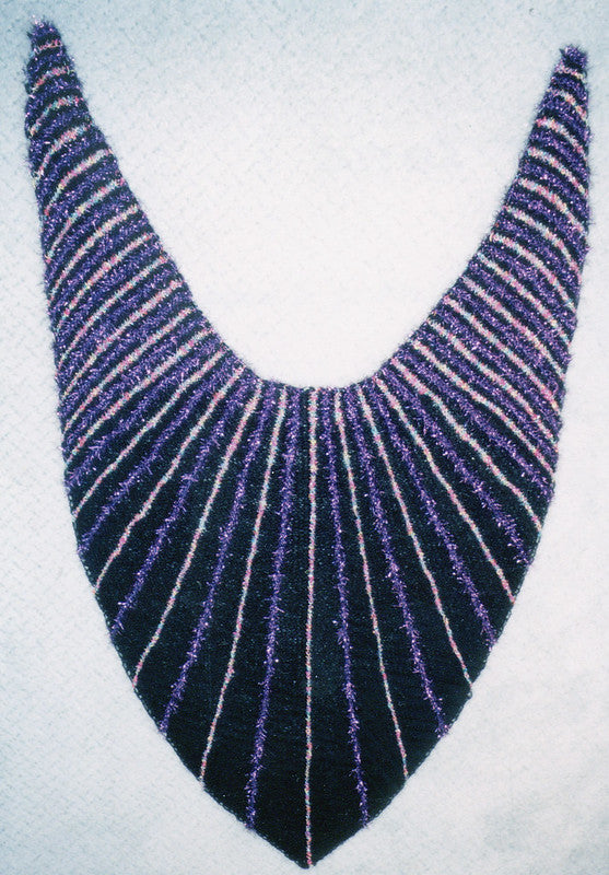 Un châle facile à réaliser, spectaculaire et qui vous permettra de vous en servir comme d'un châle de poche. Le point mousse avec des rangs raccourcis permet à ce châle de s'adapter parfaitement à la personne qui le porte. Conçu pour être tricoté en deux moitiés pour une correspondance parfaite et pour éliminer le risque de manquer de fil. Il est conçu pour extraire l'impact maximal de petites quantités de fils fantaisie. Convient à de nombreux poids de fil, finition minimale.