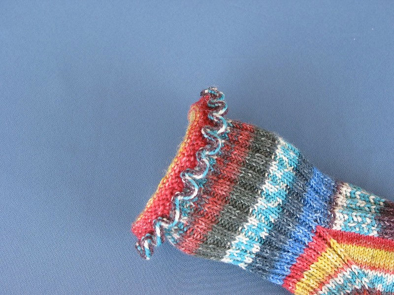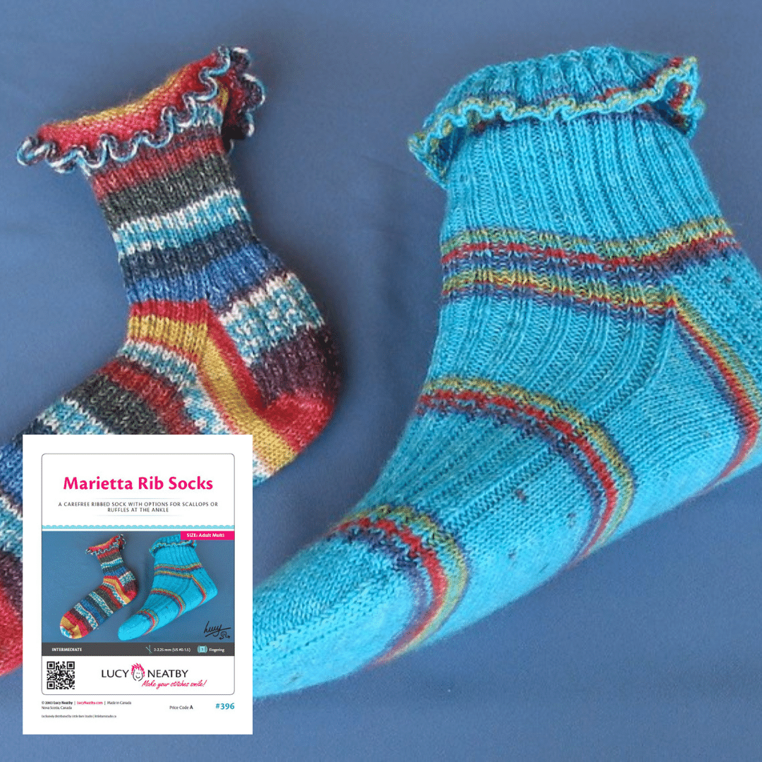 Une jolie chaussette pleine de caractère ! Réalisez-la avec le haut à volants ou le haut à volants pour un bord supérieur flamboyant et élastique. Le pied est côtelé sur le dessus pour un ajustement parfait.