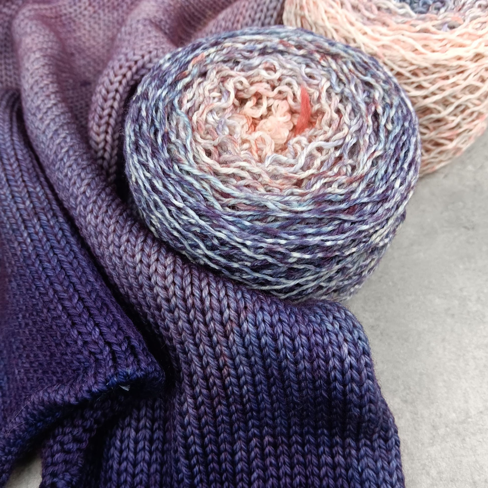 This is a set of 2x 55 gram skeins. The yarn has been dyed as a blank and unravelled after dyeing. Due to being dyed in a blank, the yarn is a bit wavy.